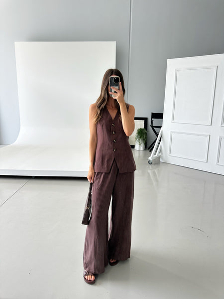Blake Linen Vest Chocolate