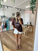 • Colourway: Chocolate with white graphic