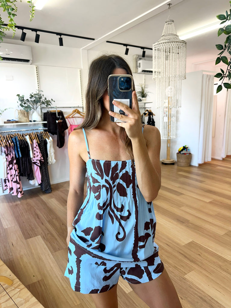 • Colourway: Blue and brown print
